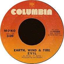 "Evil" is a song by R&B band Earth, Wind & Fire which was written by Philip Bailey and Maurice White. It was released in 1973 as a single and included on the band's 1973 album, Head to the Sky. It's a rework of "Bad Tune", a song originally recorded in their debut album Earth, Wind & Fire as an instrumental.
