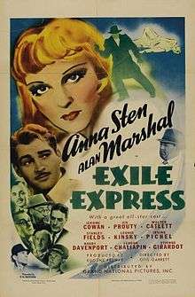 Exile Express is a 1939 American drama film directed by Otis Garrett and starring Anna Sten, Alan Marshal and Jerome Cowan.