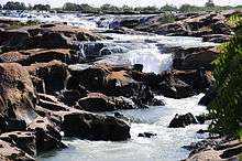 The Félou Falls (French: Chutes du Félou) are located on the Sénégal River 15 kilometres (9.3 mi) upstream of Kayes in western Mali. The river tumbles 13 metres (43 ft) down an irregular series of rocky steps. The waterfalls mark the furthest point from the mouth of the river that can be reached by boat. In 2009 work started on the construction of the Félou Hydroelectric Plant, a 62.3 megawatts (83,500 hp) run-of-the-river hydroelectric plant at the falls replacing a small 600 kW plant dating from the 1920s.
