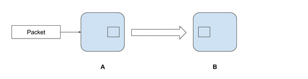 Let us consider an example of how packets are transmitted in terms of flits. In this case we have a packet transmitting between A and B in the figure. The packet transmitting process is happening in the following steps.
