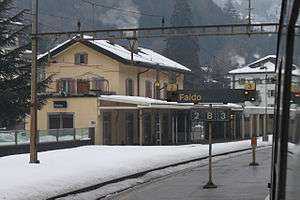 Faido is a railway station in the Swiss canton of Ticino and municipality of Faido. The station is on the Swiss Federal Railways Gotthard railway, on the southern ramp up to the Gotthard Tunnel.[1][2]
