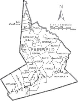 - Northwest Connecticut Convention and Visitors Bureau, serves Litchfield County and communities in northern Fairfield County. In Fairfield County it serves Ridgefield, Redding, Newtown, Bethel, Brookfield, Danbury, Sherman, and New Fairfield.