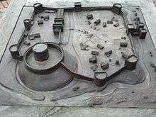 Having lost Bedford and his brother, Falkes submitted to Henry III on 19 August, pleading for forgiveness in exchange for the loss of all his possessions. At this his wife left him and pleaded for divorce, claiming she had been forced into the marriage eight years before; she was unsuccessful, but did manage to recover some of her lands. On 25 August Falkes officially gave up his lands, and chose exile to France rather than judgement from the barons.[3] Arriving in Normandy he was imprisoned by Louis VIII in Compiègne as revenge for his defeat of the French forces during the war, but was released in 1225 either through the intervention of the pope or through his Crusader's Badge, assumed in 1221. After release he spent several months in Rome, and published a fourteen-page defence of his actions, the querimonia, which laid the blame at the feet of Langton and de Burgh, and begged the pope to support him as a man excommunicated without cause and as a crusader. Departing for England, de Breauté was captured in Burgundy by an English knight he had once imprisoned, but papal intervention yet again saw his release. After this he lived in Troyes, but was expelled from France in 1226 for refusing to pay homage to the king, and again stayed in Rome, dying slightly before 18 July, allegedly from a poisoned fish.