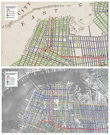 - ↑ Null(0), Tramway (27 July 2012). "Streetcars and Spatial Analysis: Downtown Brooklyn Streetcar Map 9-22-44 to 3-4-51". Retrieved 7 July 2016.