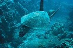 The Virgin Islands are also home to several non-venomous snake species, including the ground snake, Mona boa Virgin Islands tree boa and blind snake (Typhlops richardii). While the green- and hawksbill turtles are found throughout the U.S.V.I., the leatherback turtle is mostly observed on Saint Croix, and in large aggregations around Sandy Point. The largest populations of hawksbill turtles however are found on Buck Island and the east end of Saint Croix.[6]