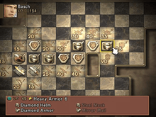 In addition to leveling up, players may improve their characters via the License Board. The License Board is an array of panels that contain "licenses" which allow a character to perform certain actions.[17] The board is split into two parts; the upper part comprises Magick, Technick, Accessory, and Augment (stat increases and other permanent buffs) licenses, and the bottom part comprises mostly Weapon and Armor licenses.[18] To use a Magick, Technick, or piece of equipment, the character must obtain its corresponding license by spending the required amount of LP (License Points).[17] LP are earned in battle along with the experience points. Like the Sphere Grid in Final Fantasy X, all characters may obtain all licenses on the board; however, each Quickening and Esper license may only be activated by a single character.[19]