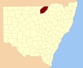| Wilkie | Walgett Shire | 29°52′22″S 147°32′26″E / 29.87278°S 147.54056°E / -29.87278; 147.54056 (Wilkie) |