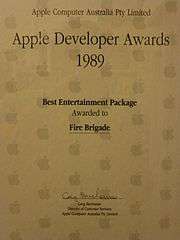 Fire-Brigade won the 1989 Apple Developers Award for Best Entertainment Package