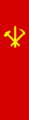 | Design | A wide red stripe at the center, bordered by a narrow white stripe both above and below, followed by a blue stripe. The central red stripe carries a five-pointed red star within a white circle near the hoist. |