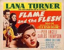 Flame and the Flesh is a 1954 drama film made by MGM that stars Lana Turner. It was directed by Richard Brooks and produced by Joe Pasternak from a screenplay by Helen Deutsch based on the novel by Auguste Bailly. The music score was by Nicholas Brodszky and the cinematography by Christopher Challis.
