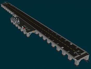 The first discussion of a floating airport was for trans-Atlantic flights. At that time a passenger aircraft capable of making the trip could be built but because of the massive need for fuel for the flight, it had a limited payload. An article appeared in the January 1930 issue of Popular Mechanics in which a model of a floating airport located in the Atlantic was proposed. To make safe flight possible with the aviation technology of that time, it called for eight such airports in the Atlantic. But unlike future floating airport ideas which were free floating, this 1930 concept had a floating airport platform, but with stabilizer legs which prevent the flight deck from pitching and rolling, similar in concept to some of today's off shore oil rigs. The cost of establishing eight such floating airports in 1930 was estimated at approximately USD$12,000,000.[1] The idea of floating airports was forgotten until in 1935 the famous French aviation pilot and builder Bleriot gave one of his last interviews in which he made the case for floating airports in mid-Atlantic; he called them Seadromes as a solution to economical trans-Atlantic passenger flights.[2]