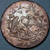Beginning in the 1780s, a number of prominent Americans called for the establishment of a central mint to supply the United States with official coinage; all such proposals failed due in large part to lack of funds and opposition from individuals and groups who preferred that coins be struck by the individual states.[1] Since there were no federal coins issued, the needs of the states were fulfilled by a variety of domestic and foreign coins and tokens, including Spanish eight-real coins (popularly known as Spanish dollars or pieces of eight).[1]