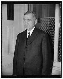 Roberts had the support of Congressman John W. Flannagan, Jr.,[4] but both Virginia senators, Harry F. Byrd and Carter Glass, disapproved of Roberts' selection. They preferred another state court judge, A.C. Buchanan, or assistant U.S. Attorney Frank S. Tavenner, Jr., among others seeking the position.[5] Months prior, Roosevelt had debated about who should have "veto power" over federal appointments in Virginia, suggesting that newly elected Governor James H. Price should have that power rather than the U.S. Senators. Charles J. Harkrader, a member of the Senate of Virginia and publisher of the Bristol Herald Courier made this White House discussion public in March 1938.[2][4][6] When Senator Glass objected that he had not been consulted over Roberts' selection, Roosevelt responded "that he was happy to consult Glass, but reserved the right to consult others, including, if he wished, 'Nancy Astor, the Duchess of Windsor, the WPA, a Virginia moonshiner, Governor Price or Charlie McCarthy.'"[7]