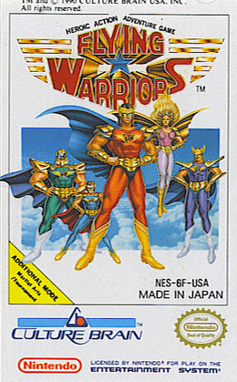 Flying Warriors is a 1991 action/fighting video game developed by Culture Brain and published by Culture Brain USA exclusively for the NES in North America in February 1991. It is a mixture of two Family Computer video games in the Hiryū no Ken franchise: Hiryu no Ken II: Dragon no Tsubasa and Hiryu no Ken III: 5 Nin no Ryuu Senshi. It implements ideas and elements from both games.