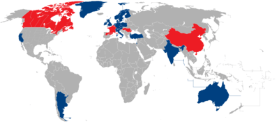 The force feeding of animals for non-medical purposes, essential to current foie gras production practices, is explicitly prohibited by specific laws in six of nine Austrian provinces, the Czech Republic, Denmark, Finland, Germany,[61] Italy,[62] Luxembourg, Norway,[63] Poland,[64] or following interpretation of general animal protection laws in Ireland, Sweden, Switzerland, the Netherlands and the United Kingdom.[65] However, foie gras can still be imported into and purchased in these countries. Most of these countries do not currently produce foie gras, nor have they in the past. Thus, these bans have stopped actual foie gras production in very few countries.[66]