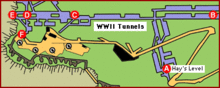 ![]() A Hay's Level B Fordham's Accommodation C Tunnelling Memorial D Clapham Junction E Jocks Balcony F Exit to surface | |