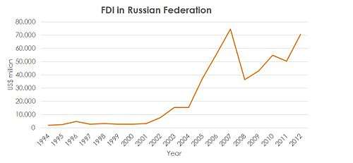 In 1991,[37] for the first time, Russia regulated the form, range and favorable policy of FDI in Russia.