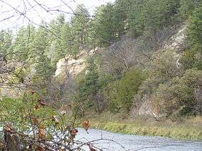 Fort Niobrara NWR is located along the banks of the Niobrara River in Cherry County. The river has eroded into the limestone, creating cliffs and a varied topography. This unusual alteration to the otherwise relatively featureless great plains presents a unique habitat that fosters numerous plant and animal species. The American Bison Society brought a bison herd to the reservation in 1913 in an effort to repopulate the region with original animal species.[2] Over 230 species of birds have been documented, along with a 350 bison and a small herd of elk (wapiti) that have been restored to the refuge. 4,635 acres (1,876 ha) of the refuge was designated as the Fort Niobrara Wilderness in 1976.