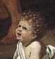At the far right, a black man fondles the breasts of a woman, distracting her from her work,[18] her pie-dish "tottering like her virtue".[19] Confusion over whether the law permitted slavery in England, and pressure from abolitionists, meant that by the mid-eighteenth century there was a sizeable population of free black Londoners; but the status of this man is not clear.[20] The black man, the girl and bawling boy fill the roles of Mars, Venus and Cupid which would have appeared in the pastoral scenes that Hogarth is aping. In front of the couple, a boy has set down his pie to rest, but the plate has broken, spilling the pie onto the ground where it is being rapidly consumed by an urchin. The boy's features are modelled on those of a child in the foreground of Poussin's first version of the Rape of the Sabine Women (now held in the Metropolitan Museum of Art),[21] but the boy crying over his lost pie was apparently sketched by Hogarth after he witnessed the scene one day while he was being shaved.