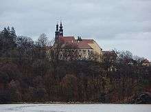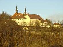 The Franciscan Monastery lies on the edge of the town of Kadaň, Czech Republic and near the river Ohře. Its history dates back to the 15th century. It is now the seat of the Municipal Museum of Kadaň with an exposition of life in a monastery. The church's dedication to the Fourteen Holy Helpers shows the connection to then popular German shrines of the same cult. Around the building is a beautiful vineyard, a French park and lots of plum trees. The monastery was ranked among the national cultural monuments by the Ministry of Culture of the Czech Republic in 1995. The monastery faces the Úhošť hill on the opposite slope of the Ohře valley.
