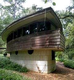 The Lewis House, also known as Spring House, is a historic home in Tallahassee, Florida, located north of I-10, at 3117 Okeeheepkee Road. It was built in 1954.[2] On February 14, 1979, it was added to the U.S. National Register of Historic Places. It was designed by Frank Lloyd Wright for George Lewis II, President of the Lewis State Bank, and his wife Clifton. The National Trust for Historic Preservation describes its significance: "The novel hemicycle form of Spring House represents a late, and little-known, stage in Wright’s long, prolific career. Although there are approximately 400 intact houses attributed to Wright throughout the country, only a fraction were from his hemicycle series."[2]