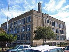 Franklin Smedley School is a historic school building located in the Frankford neighborhood of Philadelphia, Pennsylvania. It was designed by Irwin T. Catharine and built in 1927-1928. It is a three-story, nine-bay, yellow brick building on a raised basement in the Late Gothic Revival style. It features a projecting stone entryway with Tudor-arched opening, stone openings, and a crenellated parapet.[2]