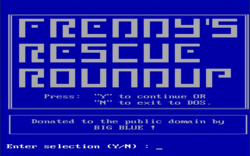 Freddy's Rescue Roundup is a 2D DOS based game released in 1984 by IBM. The goal of the game is to collect all of the roadrunners on a particular level in order to advance through the game. Doorways aid in quickly traveling across a level, while enemy robots work against the player's progress.