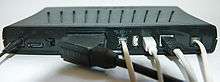 The Freebox Player is the second part of the "Freebox Revolution" offer. It is connected to the Freebox Server via PLC or by a direct Ethernet cable if both devices are close enough. It is possible to rent another Freebox Player if one wants to connect another TV set in another room.