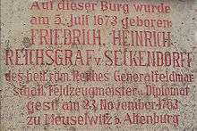 This article incorporates text from a publication now in the public domain: Chisholm, Hugh, ed. (1911). "Seckendorf, Friedrich Heinrich". Encyclopædia Britannica (11th ed.). Cambridge University Press.