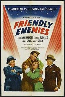 Friendly Enemies is a 1942 American drama film starring Charles Winninger, Charles Ruggles, James Craig, and Nancy Kelly. The film was directed by Allan Dwan, adapted from a play by Aaron Hoffman and Samuel Shipman. It was nominated an Academy Award in the category Sound Recording (Jack Whitney).[1]