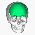 The frontal bone is one of the principal paired mid-line bones in dinosaur skulls. This bone is part of the skull roof, which is a set of bones that cover the brain, eyes and nostrils. The frontal makes contact with several other bones in the skull. The anterior part of the bone articulates with the nasal bone and the prefrontal bone. The posterior part of the bone articulates with the postorbital bone and the parietal bone. This bone defines all of part of the upper margin of the orbit.
