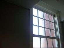 Frosted glass windows used in a restroom
