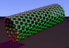 Nanotubes are cylindrical fullerenes. These tubes of carbon are usually only a few nanometres wide, but they can range from less than a micrometer to several millimeters in length. They often have closed ends, but can be open-ended as well. There are also cases in which the tube reduces in diameter before closing off. Their unique molecular structure results in extraordinary macroscopic properties, including high tensile strength, high electrical conductivity, high ductility, high heat conductivity, and relative chemical inactivity (as it is cylindrical and "planar" — that is, it has no "exposed" atoms that can be easily displaced). One proposed use of carbon nanotubes is in paper batteries, developed in 2007 by researchers at Rensselaer Polytechnic Institute.[37] Another highly speculative proposed use in the field of space technologies is to produce high-tensile carbon cables required by a space elevator.