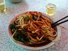 - Tian San Juan Mo (田三卷膜): a type of pancake wrapped in the shape of a cone, stuffed with bean sprouts, tofu, and other ingredients, with sauce on top.[21]