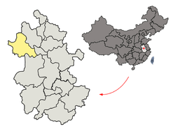 Fuyang (simplified Chinese: 阜阳; traditional Chinese: 阜陽; pinyin: Fùyáng) is a prefecture-level city in northwestern Anhui province, China. It borders Bozhou to the northeast, Huainan to the southeast, Lu'an to the south, and the province of Henan on all other sides.