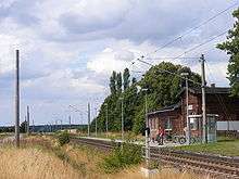 Mistorf station (July 2008). To the left is the catenary on the dismantled second track.