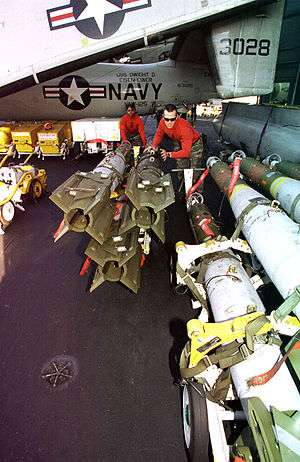 The GBU-16 Paveway II is an American Paveway-series laser-guided bomb, based on the Mk 83 general-purpose bomb, but with laser seeker and wings for guidance. It was introduced into service around 1976. It is used by USAF, US Navy, US Marine Corps, and various NATO air forces. It uses a 1,000 pound general purpose warhead. The bomb in the GBU-16 Paveway II is a 1,000 pound Mk 83 bomb.