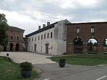 The galleria or gallery was once a corridor, aligned south to north, linked to the large Sabbioneta Castle that stood inside the walled town. Described as a "grand corridor" of the castle, it was built with stone and brick in 1584–1586. It connects to the externally drab Palazzo Giardino, which through a second portico (corridor piccolo), once connected to the castle. The statuary collection was acquired in the 16th century by Vespasiano Gonzaga[1] from antique dealers and collectors of northern Italy, as well as much of it carried away as booty by his father after the imperial Sack of Rome in 1527.[2] The hunting trophies originated from imperial collections in Prague. Much of this collection remained in the palace until 1773, when the Austrian authorities transferred them to the Palace of the Accademia di Mantova, leaving the gallery an elegant but vacant shell of its former state. In 1915 the renamed Accademia Nazionale Virgiliana ceded the collection to the comune, which has since moved it to the Palazzo Ducale of Mantua. Many pieces however, were either sold or looted in the imperial Sack of Mantua (1630) during the War of the Mantuan Succession.[3]