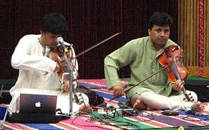 Ganesh and Kumaresh are noted Indian duo of violin players who are a part of the Carnatic music (South India) fraternity.[1][2] The brothers are best known as modern contemporary artists who have done lot of service to "Sastriya Sangitam". They are a dynamic duo of violinists, who have carved a niche for themselves in this era of great violinists. The brothers have gone deeper into the realm of the music and brought out a refreshingly original content and style for the instrument.