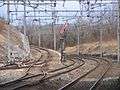 Collonges - Fort l'Écluse station is a disused station near the small town of Collonges and the Fort l'Écluse, in the Ain department, eastern France. It is situated on the Bellegarde-Geneva section of the Lyon-Geneva Railway at the junction with the Divonne branch line. It is still manned by a signalman, who manages trains from Longeray to la Plaine and operates the points twice per day to allow the daily waste disposal train to join or leave the main line.[1] It is remarkable for being one of the last places on the RFF network with operating semaphore signals from the PLM era. Another curiosity is the solar panel, which power an automatic point greaser.[2]