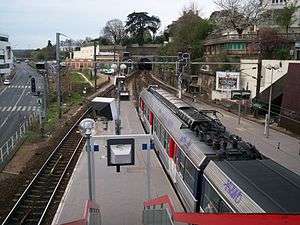 The station is served by line L and U trains of the Transilien Paris - Saint Lazare network. It is at the junction of the Saint-Nom-la-Bretèche and Versailles – Rive_Droite branches. Up until 1930, there was a branch about 1/8 of a mile long providing service to the Château de Saint-Cloud.[1]