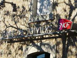 Thiviers is a railway station in Thiviers, Aquitaine, France. The station is located on the Limoges-Bénédictins - Périgueux railway line. The station is served by TER (local) services operated by SNCF.