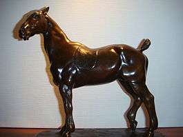Gaston d'Illiers (1876–1932), born at Boulogne-sur-Seine, France, was a French animalier sculptor who specialised in horses. His bronze statuettes are very realistic.