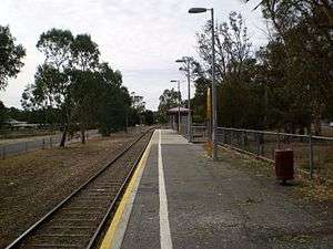 Gawler Oval railway station is located on the Gawler Central line.[1] Situated in the South Australian town of Gawler, it is 41.4 kilometres from Adelaide station.