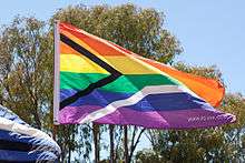- ↑ Berry, Bruce (25 January 2011). "Gay flag in South Africa". FOTW. Archived from the original on 6 March 2013. Retrieved 21 July 2014.