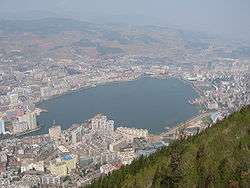 Today Gejiu is a relatively modern prosperous city with high-rise density buildings with a lakeside setting and has backdrop of rocky hills.
