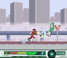 Zenkai! Racer Senshi was developed by Natsume, who previously worked on the Choujin Sentai Jetman video game for the Family Computer, as well as all four Power Rangers video games that were released in North America for the Super NES.