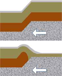- ↑ Park, R.G. (1997). Foundations of structural geology (3rd ed.). Routledge. p. 109. ISBN 0-7487-5802-X.; RJ Twiss; EM Moores (1992). "Figure 12.8: Passive shear folding". Structural geology (2nd ed.). Macmillan. pp. 241–242. ISBN 0-7167-2252-6.