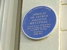 - Plaque - Admiral Sir George Augustus Westphal served in over 100 actions and wounded at Trafalgar on HMS Victory lived here 1836-1875 by Hove Borough Council