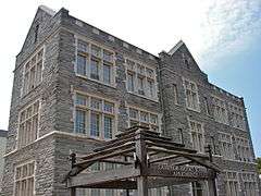 George L. Brooks School is a historic school building located in the Haddington neighborhood of Philadelphia, Pennsylvania. It was designed by Henry deCourcy Richards and built in 1919, encompassing part of the original walls of the 1902 edifice that had been destroyed by fire. It is a three-story, five bay, stone and brick building on a raised basement in the Late Gothic Revival-style. It features a slightly projecting entrance bay with Gothic arched entryway and a crenellated parapet.[2]